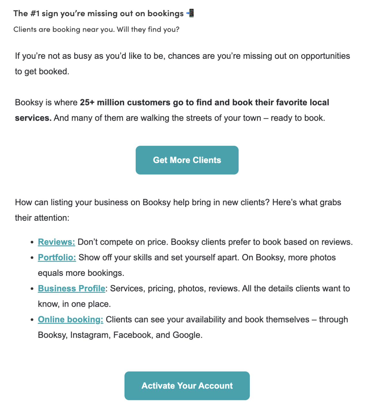 CHALLENGE: A segment of new Booksy users drop off during signup process. Create a short email series encouraging them to finish setting up their account and start a trial.